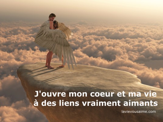 Une pensée angélique, une pensée d’amour… Prenez le temps de ressentir et d’accepter cette affirmation positive: « J’ouvre mon cœur et ma vie à des liens vraiment aimants ».